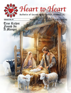 Our parish's newsletter, "Heart to Heart," serves as a channel of communication, assisting in the announcement of events and the reporting of information regarding the various initiatives of Sacred Heart Parish, Andheri East. It also serves as a testament to God's wonderful works among us in our parish through the activities of its various cells, groups, associations, and communities. Besides circulation within our parish (one copy per family), the bulletin is also sent to the Dean, Bishop etc. as reports. Spiced with humour, information about good health, professional opinion, interviews with leaders within the Parish, a message from the Parish Priest, articles for spiritual growth, and a Bible Quiz corner for Family, The Heart to Heart is a publication that is released quarterly, around the feasts of Easter, Sacred Heart of Jesus, Nativity of Our Lady and Christmas. Each issue focuses on a theme. The editorial team works within a scheduled timeframe and also takes into consideration the economics of publishing the bulletin.